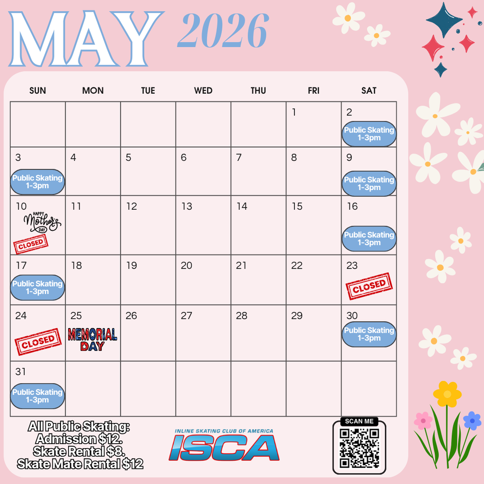 Open Skating Hours :Saturday 1pm - 3pm &. Sunday 1pm-3pm