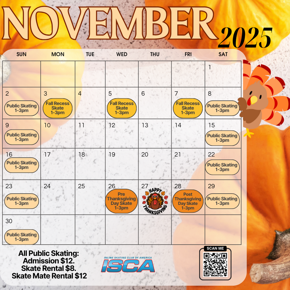 Open Skating Hours :Saturday 1pm - 3pm &. Sunday 1pm-3pm